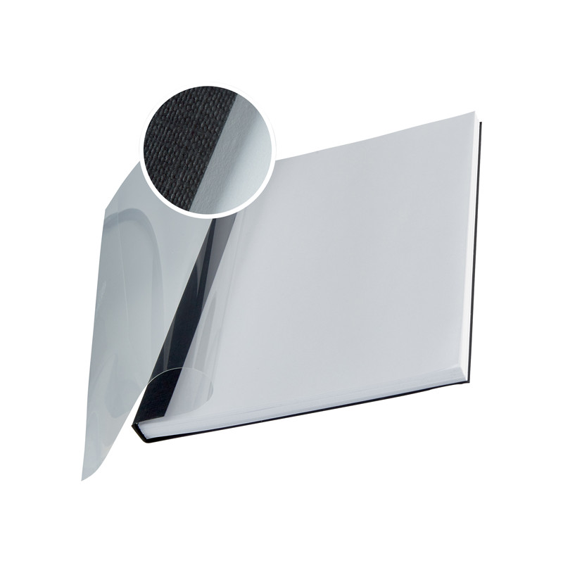Per rilegare da 36 a 70 fogli. Copertina flessibilie con fronte trasparente per poter essere personalizzate. Dorso e retro colorati con finitura tipo lino.