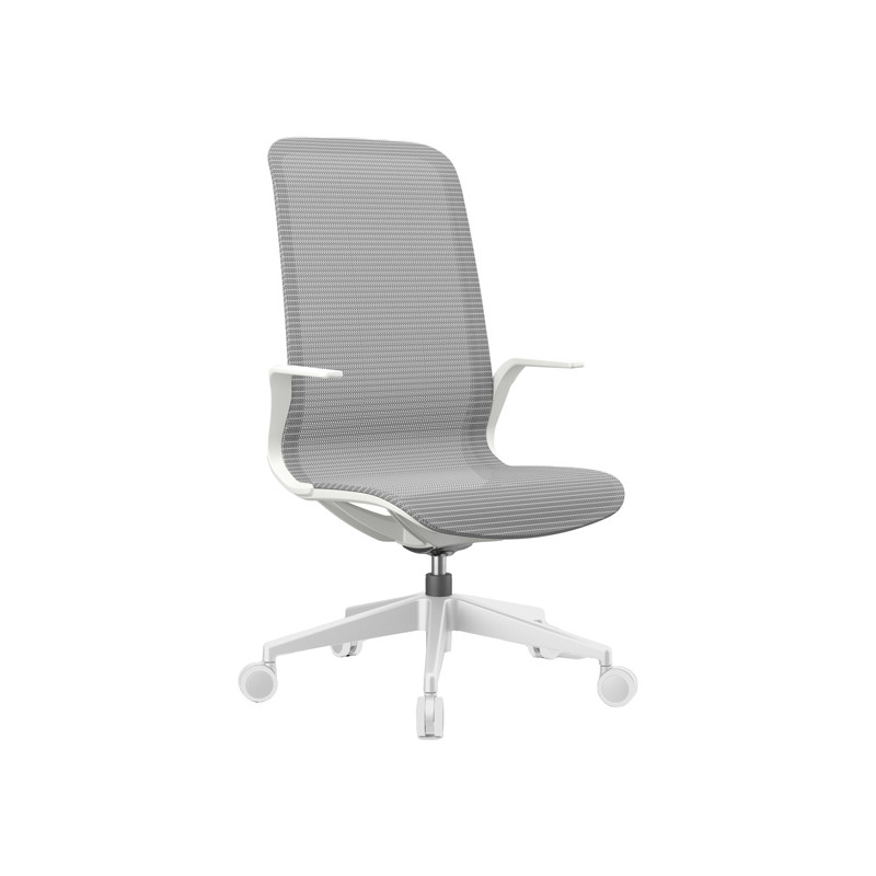 Poltrona direzionale girevole con elevazione a gas - meccanismo oscillante - base alluminio. Rivestimento seduta in rete bianca. Braccioli inclusi (non rimovibili). Alt.tot.: 117-127; Prof.tot.: 70; Alt.schienale: 67; Larg.schienale: 46; Larg.seduta: 49; Prof.Sedile: 46; Altezza sedile: 48 - 58.