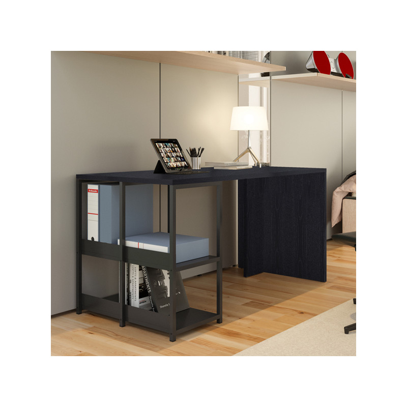 Postazione di lavoro home-office ideale per lo smart working. Le dimensioni compatte la rendono idonea per un allestimento domestico anche in ambienti con poco spazio a disposizione. Estrema versatilità grazie alla possibilità di allestire la robusta struttura metallica che sorregge il desktop sia sulla destra che sulla sinistra dello stesso. Design minimal e stile nordico industriale si fondono in un equilibrio perfetto fra semplicità e funzionalità.