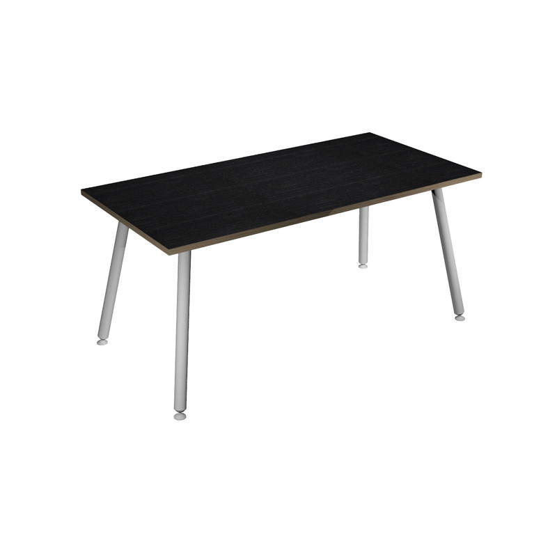 Materiale bilaminato nobilitato melaminico spessore 22 mm conforme norme UNI e EN classe E1. Scrivanie con piani antigraffio e antiriflesso, stabili e robuste grazie alla struttura rafforzata da quattro travi in metallo di collegamento fra le gambe.