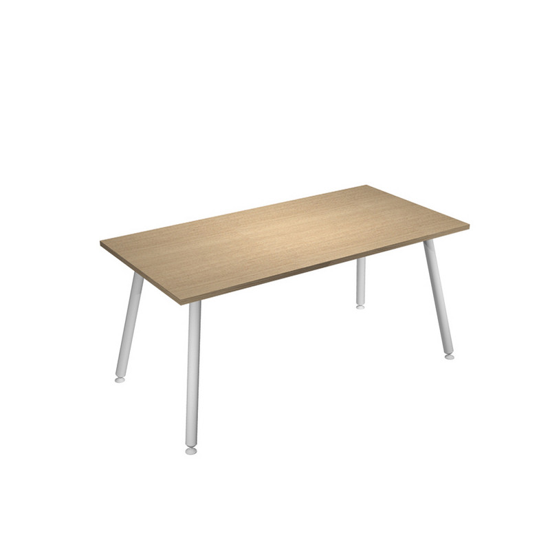 Linea di arredo operativo dal design innovativo e dinamico caratterizzata dalle gambe in metallo cilindriche inclinate delle scrivanie e dei tavoli rotondi. Robusti piani in melaminico sp. 22 mm con bordo antishock resistente agli urti in ABS 2mm. Gambe in metallo verniciato bianco (diam. 50 mm) complete di piedini livellabili in altezza.