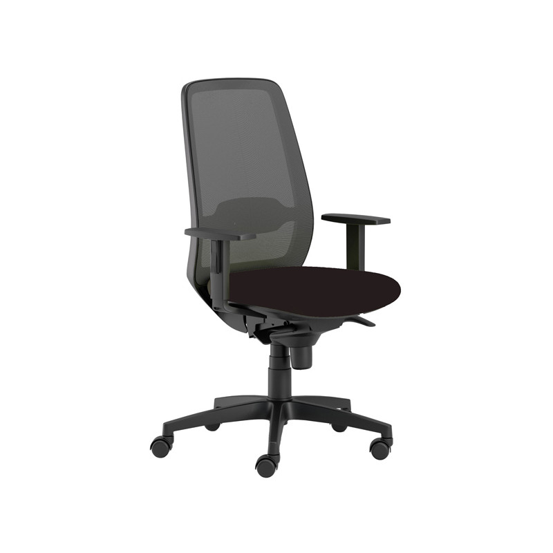 Sedia girevole operativa. Meccanismi: elevazione a gas - schienale regolabile up-down - meccanismo synchro con sedile traslabile - anti shock - meccanismo a contatto permanente. Rivestimento seduta in tessuto "FASHION - Chili" 75% poliestere riciclato e certificazioni di infiammabilità 1 IM. Completa di braccioli regolabili. Alt.tot.: 100-112cm; Prof.tot.: 70cm; Alt.schienale: 58cm; Larg.schienale: 47cm; Larg.seduta: 50cm; Prof.Sedile: 45cm; Alt. sedile: 42-55cm.