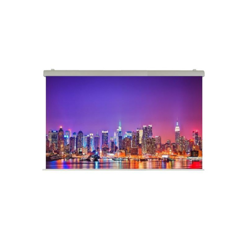 Monta una tela con Certificazione M1 del tipo Ignifugo ad Alta Riflettenza ed è ideale per sale riunioni importanti, meeting, sale congressi, grandi spazi ed eventi in fiere.