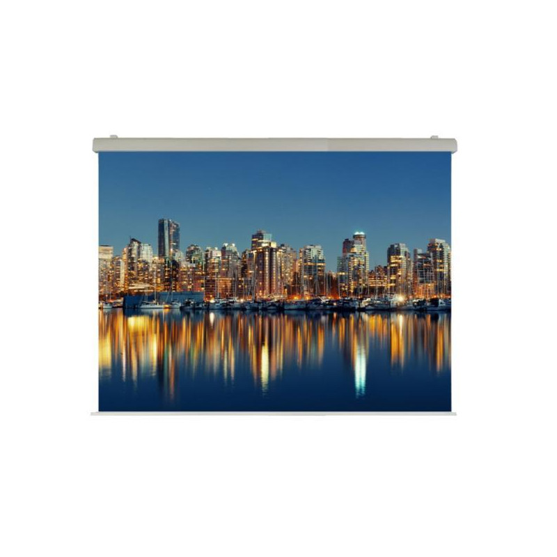 Monta una tela con Certificazione M1 del tipo Ignifugo ad Alta Riflettenza ed è ideale per sale riunioni importanti, meeting, sale congressi, grandi spazi ed eventi in fiere.