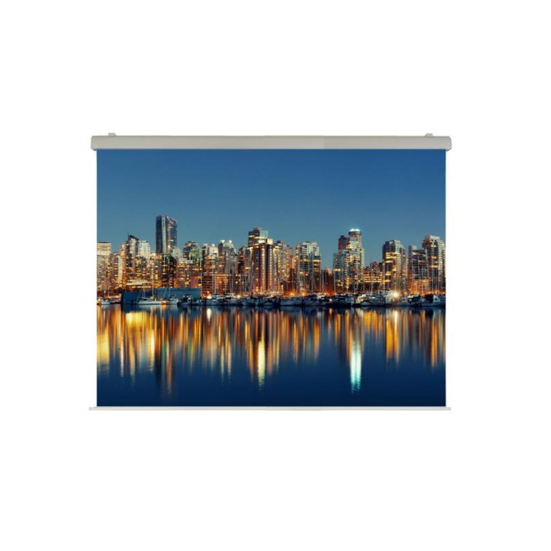 Monta una tela con Certificazione M1 del tipo Ignifugo ad Alta Riflettenza ed è ideale per sale riunioni importanti, meeting, sale congressi, grandi spazi ed eventi in fiere.