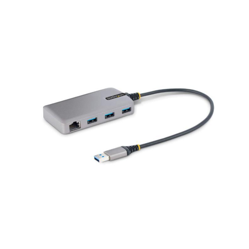 Hub USB a 3 porte con Ethernet - Hub USB 3.0 5Gbps alimentato via bus - Hub splitter USB-A a 3x USB-A portatile per desktop/notebook con ingresso di alimentazione ausiliaria opzionale - Cavo da 30 cm