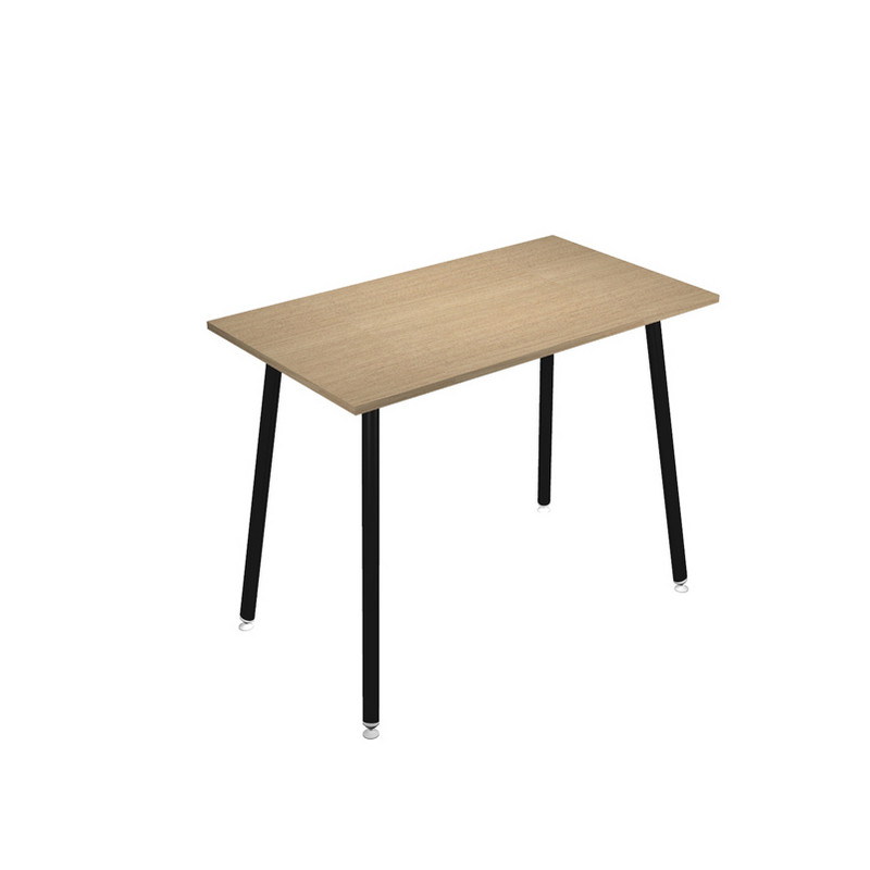 Linea di arredo operativo dal design innovativo e dinamico caratterizzata dalle gambe in metallo cilindriche inclinate delle scrivanie e dei tavoli rotondi. Robusti piani in melaminico sp. 22 mm con bordo antishock resistente agli urti in ABS 3 mm. Gambe in metallo verniciato nero (diam. 50 mm) complete di piedini livellabili in altezza. Materiale bilaminato nobilitato melaminico spessore 22 mm conforme norme UNI e EN classe E1. Tavoli alti di varie dimensioni ideali per garantire un pratico e veloce appoggio per riunioni, pause pranzo o caffè, briefing informali. Piani antigraffio e antiriflesso, stabili e robusti grazie alla struttura rafforzata da quattro travi in metallo di collegamento fra le gambe.