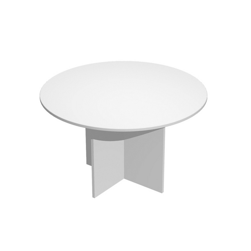 TAVOLO RIUNIONE tondo da 4 POSTI Ø120 x H72cm. Realizzato in melaminico spessore 22 mm, certificato classe E1. Piani bordati con profili antiurto sagomato, gambe in melaminico sp. 22 mm e piedini regolabili per la massima stabilità.
