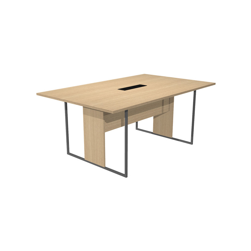 Desktop in melaminico bilaminato sp.22mm. 2 modesty panel strutturali in melaminico bilaminato H35cm (sp.18mm). Gambe ad anello in metallo a sezione quadrata 20x20mm verniciate a polveri epossidiche complete di piedini regolabili iin altezza e montante strutturale in melaminico bilaminato di larghezza 30cm (spessore 18mm). Larghezza gamba 90cm.