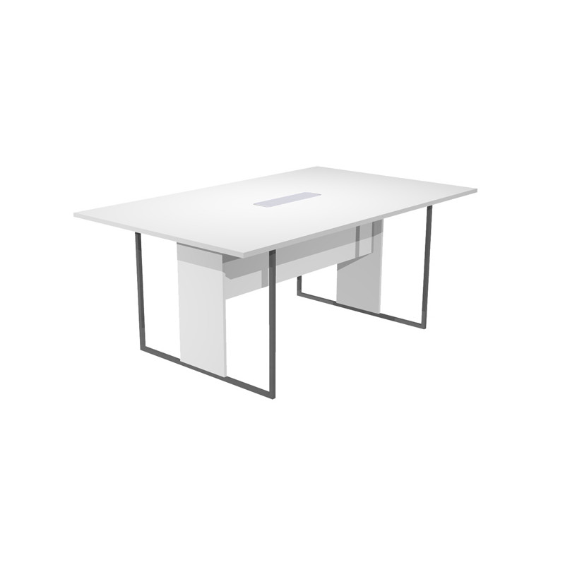 Desktop in melaminico bilaminato sp.22mm. 2 modesty panel strutturali in melaminico bilaminato H35cm (sp.18mm). Gambe ad anello in metallo a sezione quadrata 20x200mm verniciate a polveri epossidiche complete di piedini regolabili in altezza e montante strutturale in melaminico bilaminato di larghezza 30cm (spessore 18mm). Larghezza gamba 90cm.