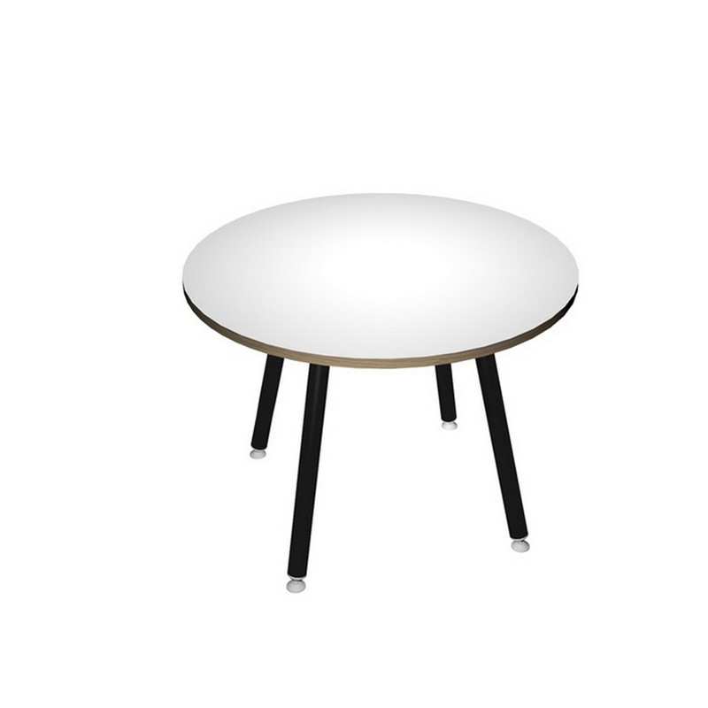 Materiale bilaminato nobilitato melaminico spessore 22 mm conforme norme UNI e EN classe E1. Tavoli rotondi di dimensioni contenute ideali per garantire un pratico e veloce appoggio per riunioni.