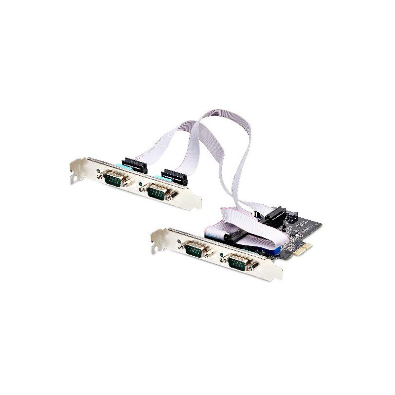* SPECIFICHE: Chipset Asix AX99100. Compatibile con 16C450 e 16C550 UART. 4 porte D-Sub a 9 pin. Baud massimo 921,6Kbps/porta. 256 Byte FIFO. Ritenzione COM. Windows e Linux. Modalità di parità Pari/Dispari/Mark/Spazio/None. 5/6/7/8/9 bit dati. PCIe 2.0 x1