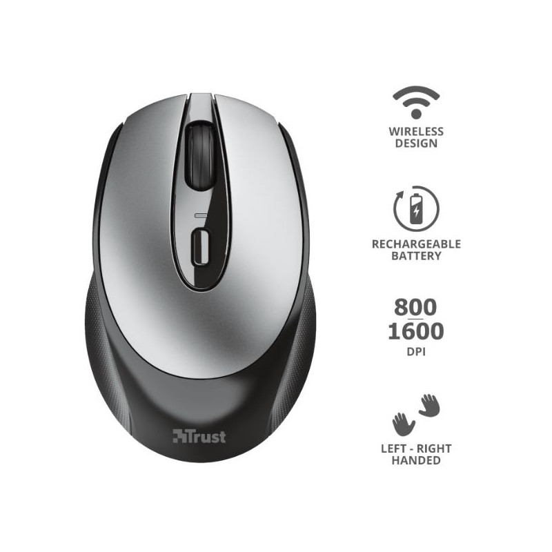 Il mouse wireless ricaricabile Trust Zaya è uno strumento pratico che ti semplifica la giornata lavorativa. È provvisto di quattro pulsanti, incluso un pratico commutatore DPI per regolare la velocità del cursore, un microricevitore USB che puoi facilmente riporre nello stesso mouse e batteria ricaricabile. Non dovrai mai più preoccuparti delle batterie.