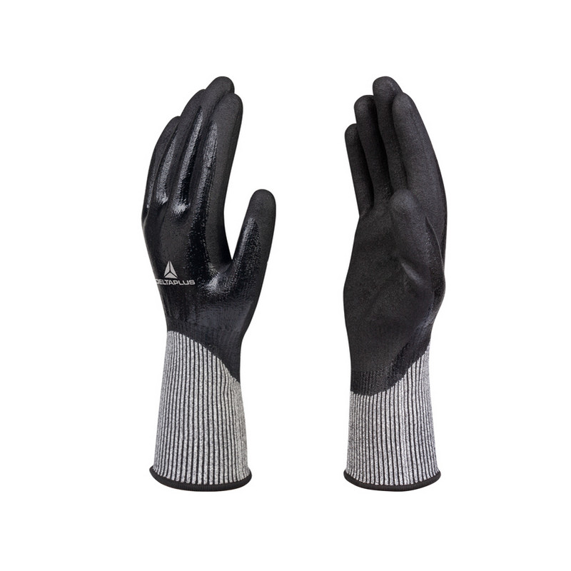 Guanti Tricot DELTANOCUT® Fibra alte prestazioni DELTAnocut®. Doppia spalmatura nitrile. Finezza 13. Impermeabile all'oli e buona adesione. Ottima protezione delle mani. Certificato CE. Conforme a EN ISO 21420:2020, EN388:2016+A1:2018.