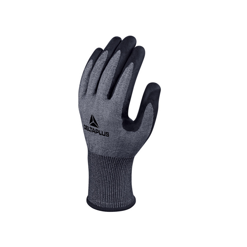 Guanto VENICUT F XTREM CUT TOUCH antitaglio, Fibra alte prestazioni Xtrem CUT®. Spalmatura schiuma di nitrile e TPU su palmo e punta delle dita. Finezza 18. Colore: grigio/nero. Categoria DPI: 2. Certificazione CE. Conformità alle norme EN388:2016+A1:2018, EN ISO 21420:2020 e NORME USA ANSI-ISEA 105:2016.