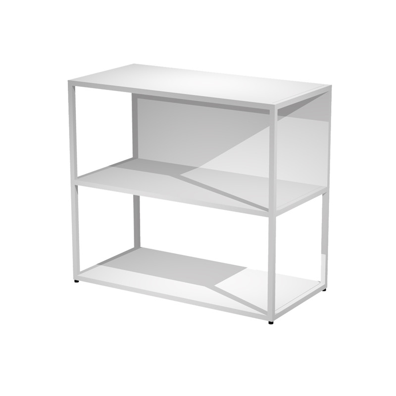 Librerie in metallo con struttura a sezione quadrata 20x20mm verniciate a polvere epossidica. Ripiani, base dietro e top in melaminico (il dietro può essere posizionato a scelta in qualsiasi vano). Le librerie possono essere installate a terra (kit di montaggio compreso con piedini regolabili in altezza) oppure possono essere allestite in sovrapposizione agli armadi). Libreria in metallo a 2 vani con struttura 20x20 mm, a giorno con ripiani, base, cappello e un dietro in melaminico (la schiena in melaminico è riposizionabile a scelta in fase di montaggio) - piedini regolabili in altezza. Dimensioni: 90x44xH80cm.