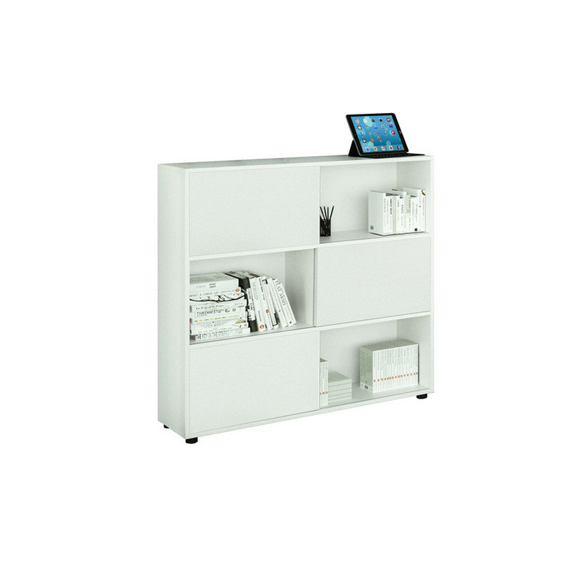 Nuovo Libreria bassa Tetris a 3 ripiani ante scorrevoli - 120x35x116 cm - Bianco/bianco Visualizza ingrandito