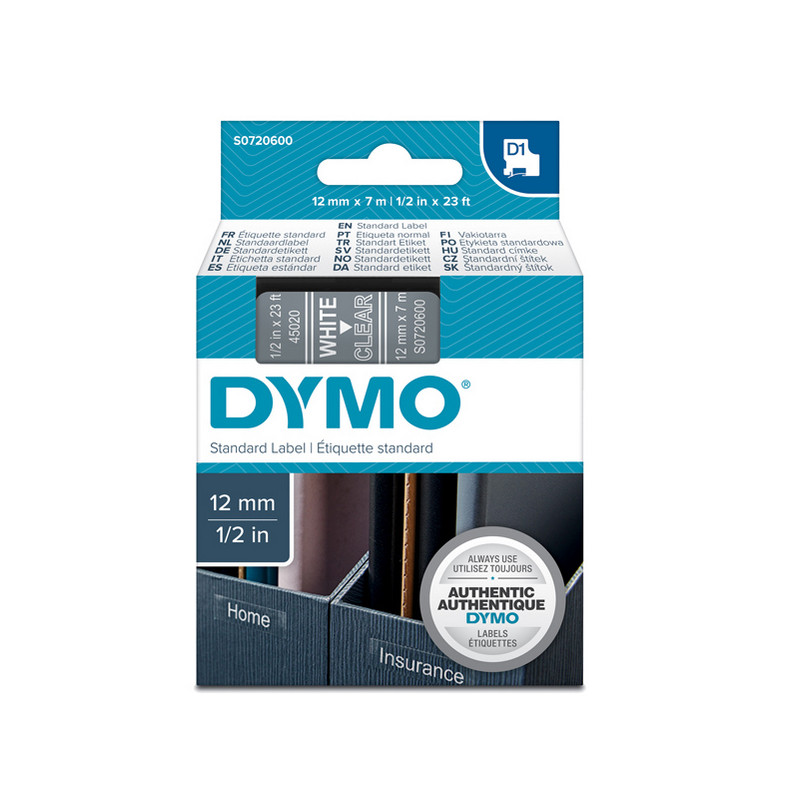 Nastro D1 standard 450200 - 12 mm x 7 mt - PL - bianco/trasparente - Dymo