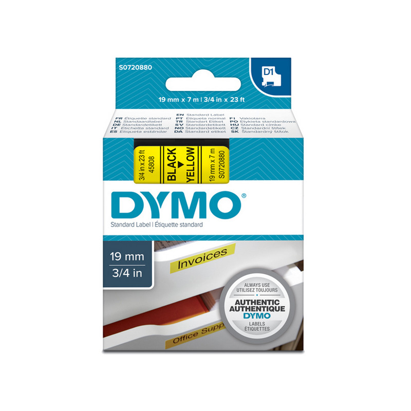 >Cancelleria>Etichette>Nastro D1 standard 458080 - 19 mm x 7 mt - PL - nero/giallo - Dymo