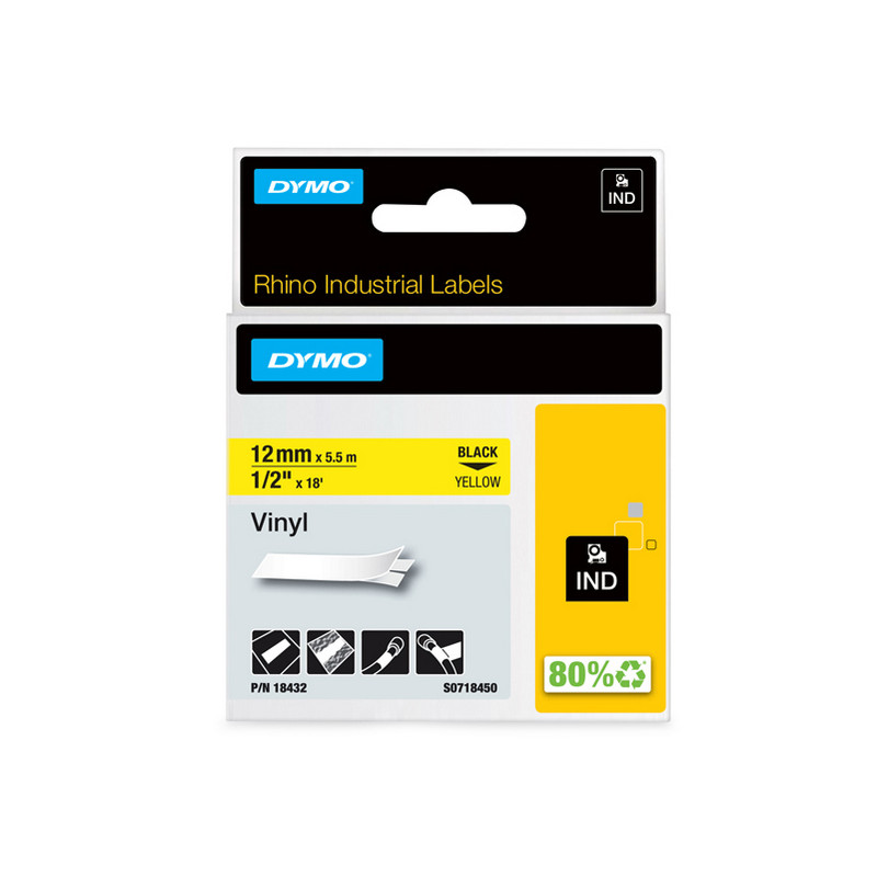 >Cancelleria>Etichette>Nastro Rhino 18432 - 12 mm x 5,5 mt - vinile - permanente - nero/giallo - Dymo