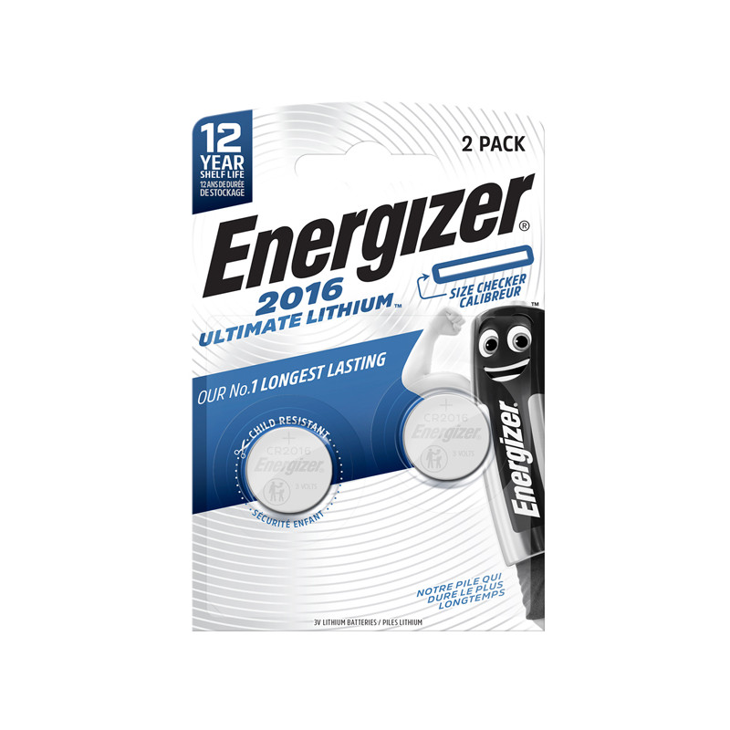 Blister 2 pile CR2016 Ultimate Lithium - Energizer Specialistiche. Pile specialistiche a bottone che garantiscono prestazioni elevate grazie alla maggiore tensione per tutta la durata della batteria. Tensione: 3V.