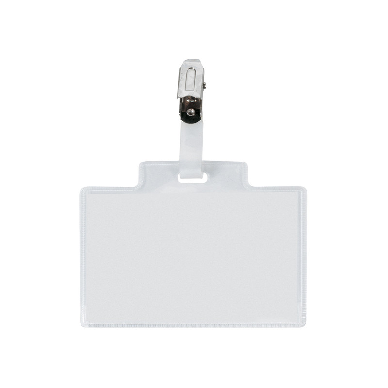 Porta nomi in PVC trasparente, alto spessore, completi di pinzette "a pinza" e senza cardoncini. Apertura lato corto (laterale). Adatti a congressi, riunioni, visite guidate. Formato contenuto 95x60mm.