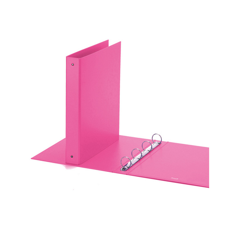 Raccoglitore realizzato in polipropilene con anima di cartone. Texture goffrata "Europa" per chi ama l'eleganza. Elevata resistenza per un uso quotidiano molto intenso a casa e in ufficio. Meccanismo a 4 anelli tondi (diametro 30 mm). Formato utile 22x30 cm. Formato esterno 27x32 cm. Colore rosa. Made in Italy.