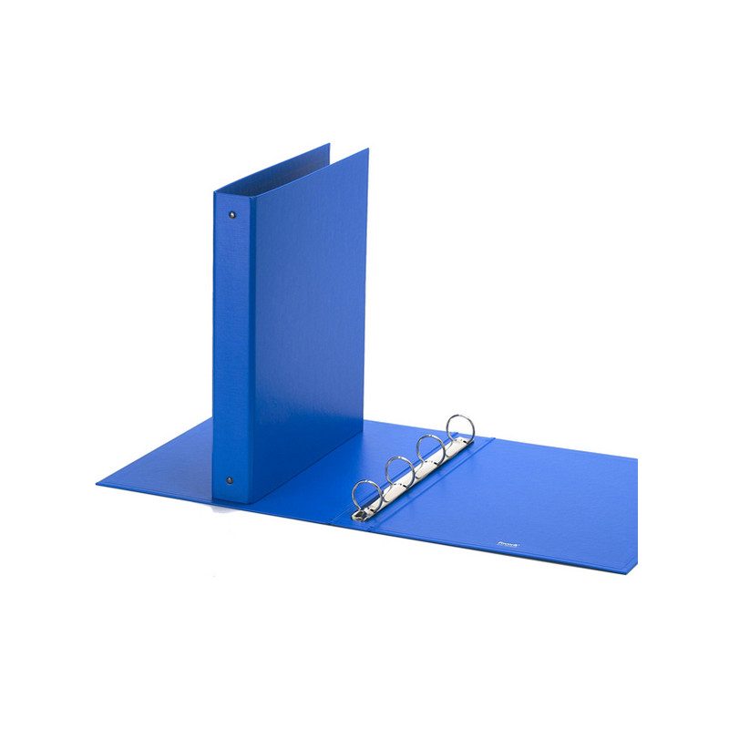 Raccoglitore realizzato in polipropilene con anima di cartone. Texture goffrata "Europa" per chi ama l'eleganza. Elevata resistenza per un uso quotidiano molto intenso a casa e in ufficio. Meccanismo a 4 anelli tondi (diametro 30 mm). Formato utile 22x30 cm. Formato esterno 27x32 cm. Colore azzurro. Made in Italy