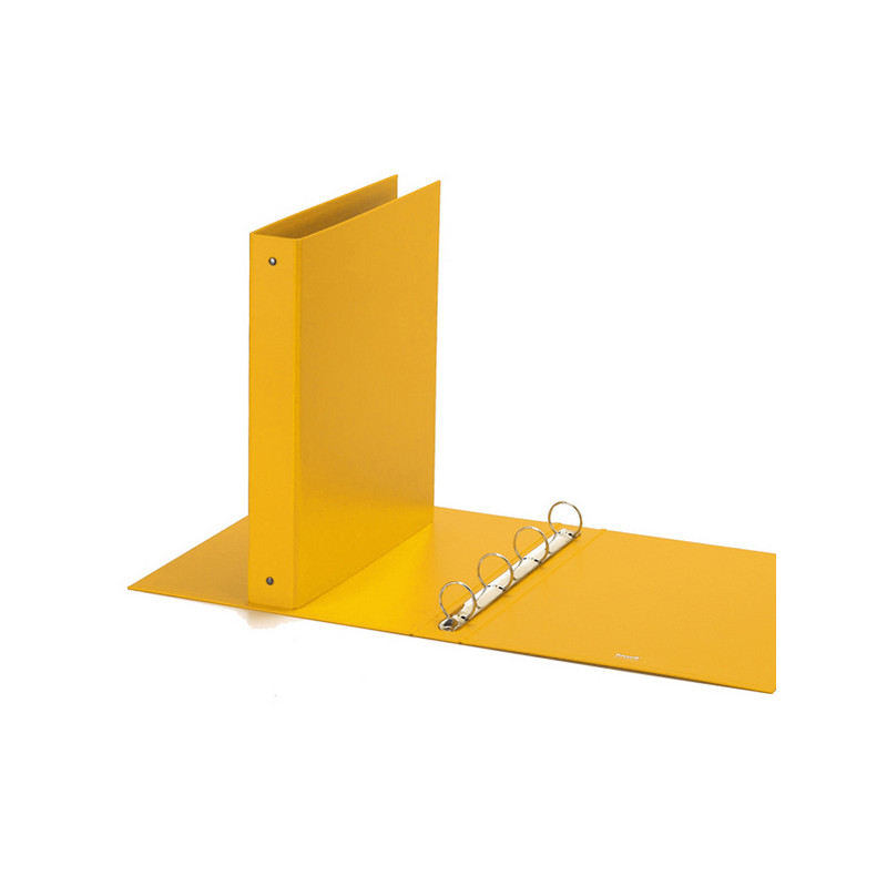 Raccoglitore realizzato in polipropilene con anima di cartone. Texture goffrata "Europa" per chi ama l'eleganza. Elevata resistenza per un uso quotidiano molto intenso a casa e in ufficio. Meccanismo a 4 anelli tondi (diametro 30 mm). Formato utile 22x30 cm. Formato esterno 27x32 cm. Colore giallo. Made in Italy.