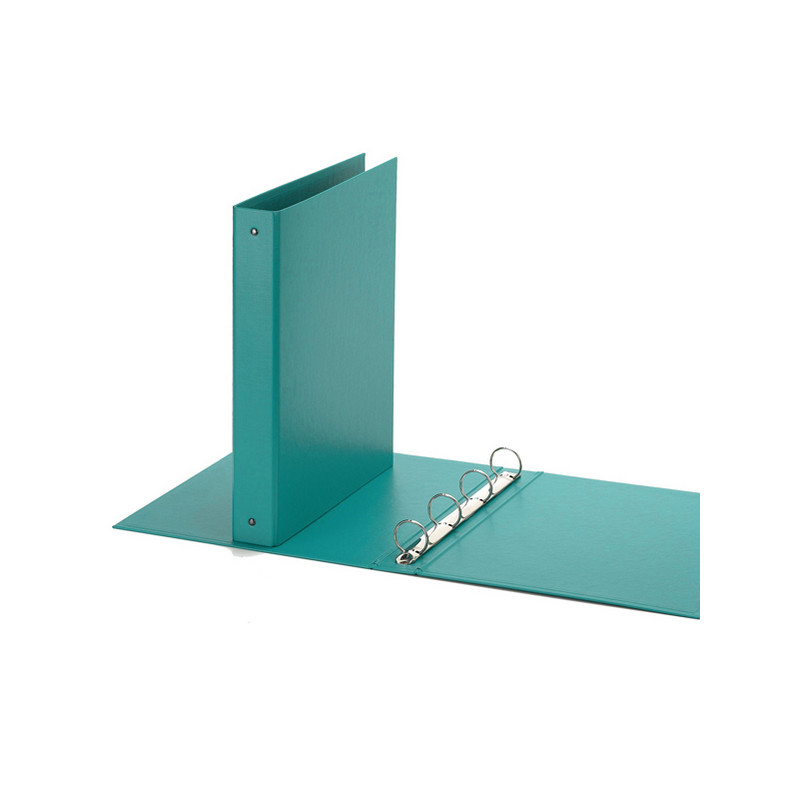 Raccoglitore realizzato in polipropilene con anima di cartone. Texture goffrata "Europa" per chi ama l'eleganza. Elevata resistenza per un uso quotidiano molto intenso a casa e in ufficio. Meccanismo a 4 anelli tondi (diametro 30 mm). Formato utile 22x30 cm. Formato esterno 27x32 cm. Colore verde acqua. Made in Italy.