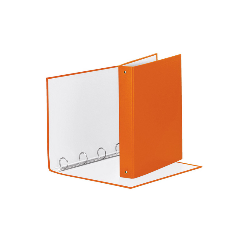 Raccoglitore in robusto cartone da 2 mm di spessore rivestito in polipropilene (bianco internamente). Solidità e affidabilità dei materiali rendono il prodotto ideale per un uso intensivo domestico o in ufficio, mentre il rivestimento fornisce eleganza e gradevolezza al tatto. Meccanismo a 4 anelli tondi (diametro 30 mm). Formato utile 22x30 cm. Dimensioni esterne 27,5x31,5x4,5 cm. Capacità 200 fogli (da 80 gr/mq). Colore arancione.