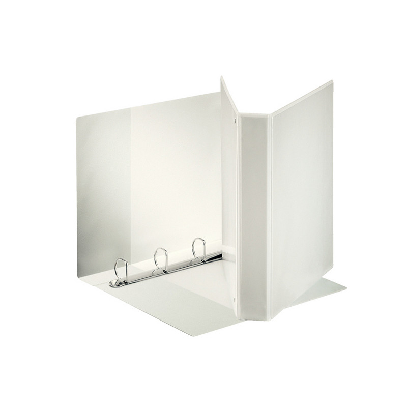 Raccoglitore display formato Maxi, in cartone da 2 mm rivestito in polipropilene eco-compatibile con finitura tipo pelle. Il rivestimento, incollato su entrambi i lati e saldato ai bordi, garantisce un prodotto di qualità eccellente. Il formato del raccoglitore consente di inserire indici e intercalari in formato Maxi per ospitare buste a perforazione universale. La personalizzazione è resa agevole da tre tasche esterne, mentre due tasche interne permettono di contenere fogli sparsi e appunti. Meccanismo a 4 anelli (a D, altezza 30 mm). Formato utile: 22x30 cm (A4). Dimensioni: 270x350x30 mm. Capacità: 280 fogli A4 (80 gr/mq). Colore bianco.