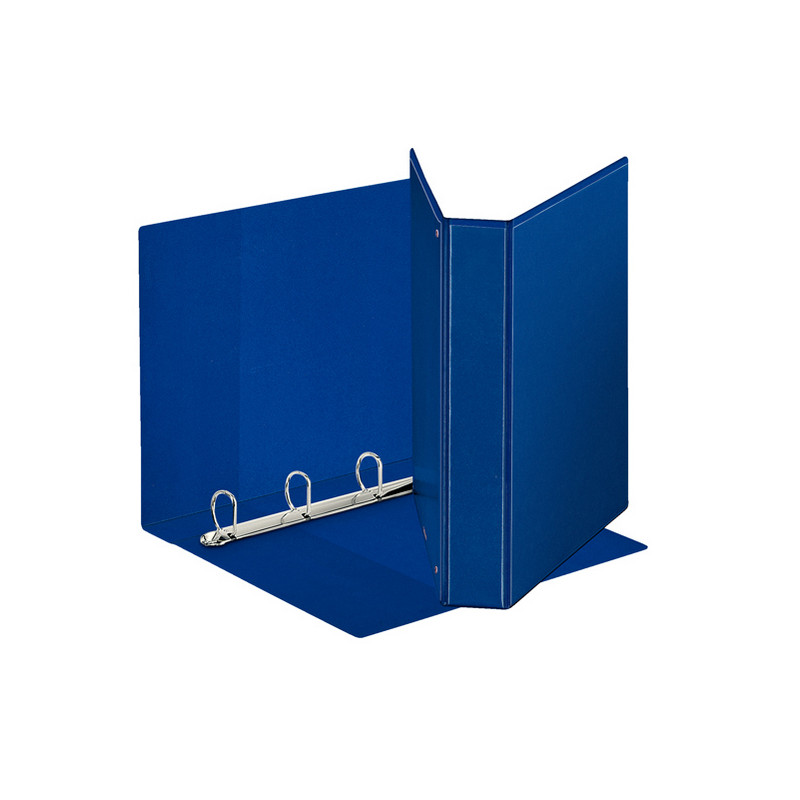 Raccoglitore display formato Maxi, in cartone da 2 mm rivestito in polipropilene eco-compatibile con finitura tipo pelle. Il rivestimento, incollato su entrambi i lati e saldato ai bordi, garantisce un prodotto di qualità eccellente. Il formato del raccoglitore consente di inserire indici e intercalari in formato Maxi per ospitare buste a perforazione universale. La personalizzazione è resa agevole da tre tasche esterne, mentre due tasche interne permettono di contenere fogli sparsi e appunti. Meccanismo a 4 anelli (a D, altezza 40 mm). Formato utile: 22x30 cm (A4). Dimensioni: 270x350x40 mm. Capacità: 380 fogli A4 (80 gr/mq). Colore blu.