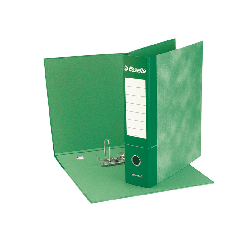 Registratore con meccanismo a leva rivestito in cartone verde (spessore 2 mm), con originale grafica nuvolata all'esterno ed effetto retinato di uguale tonalità all'interno. Foro per l'estrazione ed ampia etichetta stampata sul dorso per favorire la personalizzazione e rendere più veloce l’individuazione del documento ricercato. Resistente custodia in fibrone con bande metalliche di rinforzo che mantengono i bordi perfettamente diritti anche dopo un lungo utilizzo. Formato Commerciale (LxH) 23x30 cm. Dorso 5 cm. Dimensioni 55x320x295 mm.