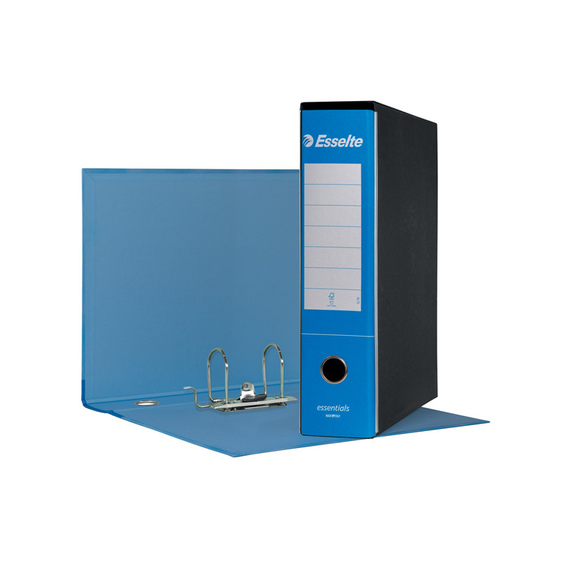 Registratore con meccanismo a leva rivestito in cartone blu (spessore 2 mm), con originale grafica nuvolata all'esterno ed effetto retinato di uguale tonalità all'interno. Foro per l'estrazione ed ampia etichetta stampata sul dorso per favorire la personalizzazione e rendere più veloce l’individuazione del documento ricercato. Resistente custodia in fibrone con bande metalliche di rinforzo che mantengono i bordi perfettamente diritti anche dopo un lungo utilizzo. Formato Protocollo (LxH) 23x33 cm. Dorso 8 cm. Dimensioni 85x350x295 mm.