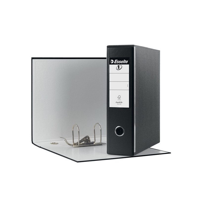 Registratore in robusto cartone da 2 mm, rivestito sia internamente che esternamente in polipropilene incollato su entrambi i lati. Dotato di ampia etichetta scrivibile su entrambi i lati e di portaetichetta saldato sul dorso.