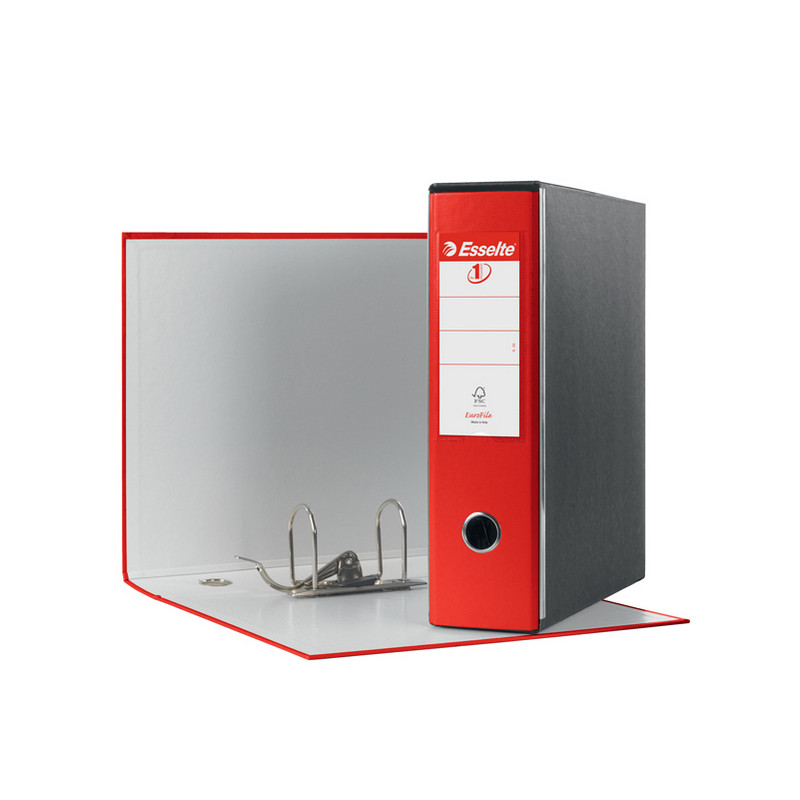 Registratore in robusto cartone da 2 mm, rivestito sia internamente che esternamente in polipropilene incollato su entrambi i lati. Dotato di ampia etichetta scrivibile su entrambi i lati e di portaetichetta saldato sul dorso.