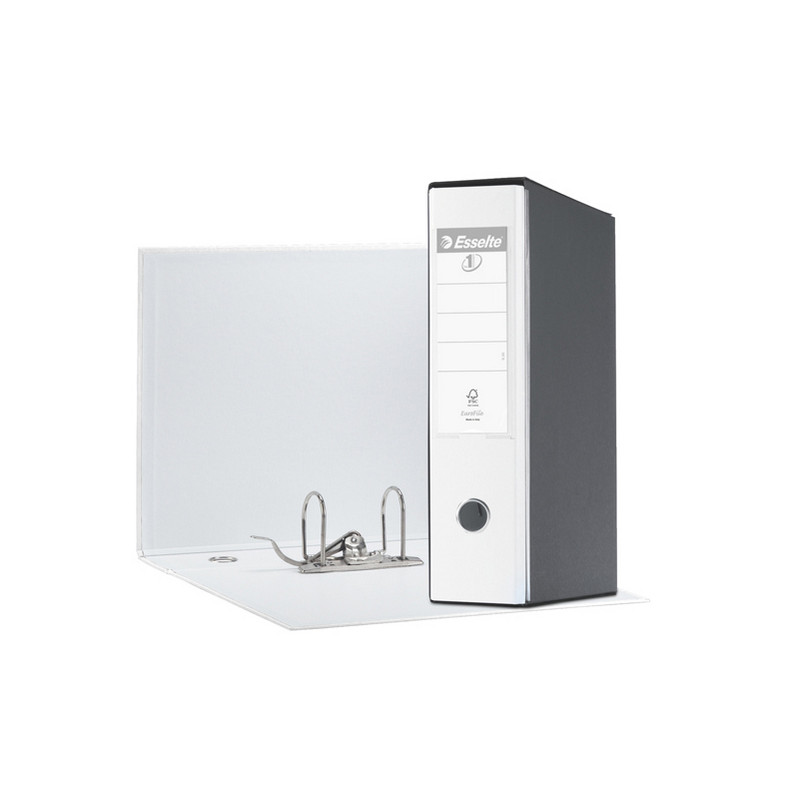 Registratore in robusto cartone da 2 mm, rivestito sia internamente che esternamente in polipropilene incollato su entrambi i lati. Dotato di ampia etichetta scrivibile su entrambi i lati e di portaetichetta saldato sul dorso.