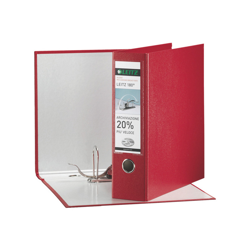 Registratore in plastica con meccanismo brevettato Leitz 180° che rende più facili e rapide le pratiche di archiviazione ed estrazione dei documenti. Rispetto ad un registratore tradizionale, l'apertura del meccanismo risulta infatti più ampia del 50% così che lo svolgimento di tali attività possa essere più veloce del 20%.