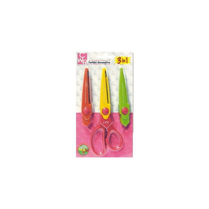 Originali forbici per decorazioni sono dotate di lame sagomate per ottenere facilmente straordinari effetti: zig-zag, onde, greche. Basta scegliere l'effetto desiderato, montare la lama corrispondente sull'impugnatura e il gioco è fatto! Lame autoaffilanti in acciaio inox, impugnatura in materiale acrilico.