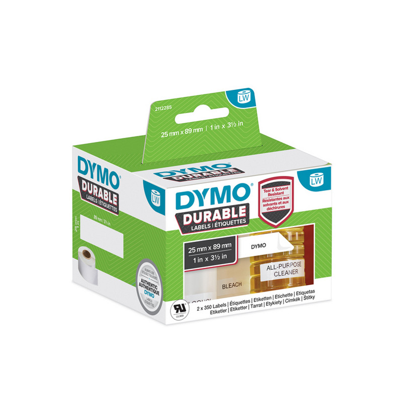 Rotolo di etichette permanenti LabelWriterTM DURABLE INDUSTRIAL in carta bianca multiuso 25x89mm (350et x rotolo). Utilizzabili con le stampanti per etichette LABELWRITER : sono caratterizzate da un adesivo per uso industriale e sono resistenti allo scolorimento, al distacco e all'abrasione dovuti a luce del sole, caldo, umiditÓ e detergenti. Le etichette Permanenti DYMO DURABLE sono perfette per cucine, attrezzature sportive, armadi da esterno e altro.