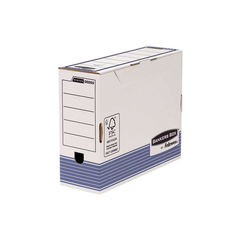 Scatole archivio Box System nel formato A4. Aree etichettabili sui dorsi. Patella di chiusura per una maggiore sicurezza. Formato utile LxHxP 10x26x31,5cm. Confezione da 10 scatole.