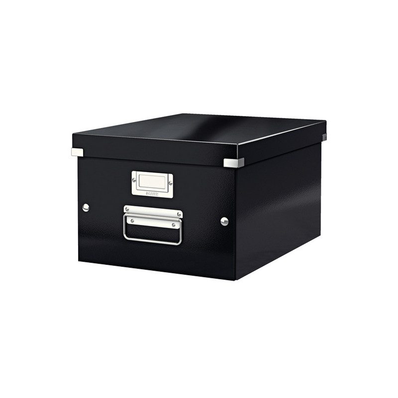 Scatole click&store Leitz in cartone per archivio dal design moderno elegante e professionale. Assemblaggio veloce e semplicissimo. Doppia chiusura (interna ed esterna) e doppio strato d di cartone sui bordi per una maggiore resistenza e stabilità. Rivestimento in polipropilene lucido ed inserti in metallo nichelato. Formato LxHxP: 27x19x36cm.