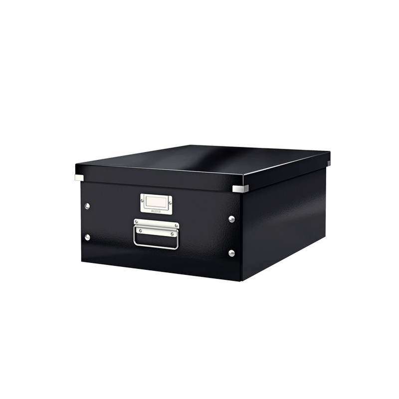 Scatole click&store Leitz in cartone per archivio dal design moderno elegante e professionale. Assemblaggio veloce e semplicissimo. Doppia chiusura (interna ed esterna) e doppio strato d di cartone sui bordi per una maggiore resistenza e stabilitÓ. Rivestimento in polipropilene lucido ed inserti in metallo nichelato. Formato LxHxP: 36,9x20x48,4cm.