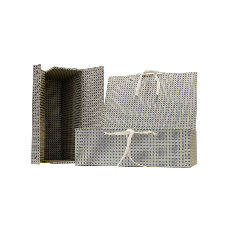 Scatola archivio in legno Universale. Realizzata in cartone, legno, tela e carta stampata Paglia di Vienna. Scatola ad apertura totale con chiusura a fettuccia. Formato utile: 38x27cm. Dorso 12cm.