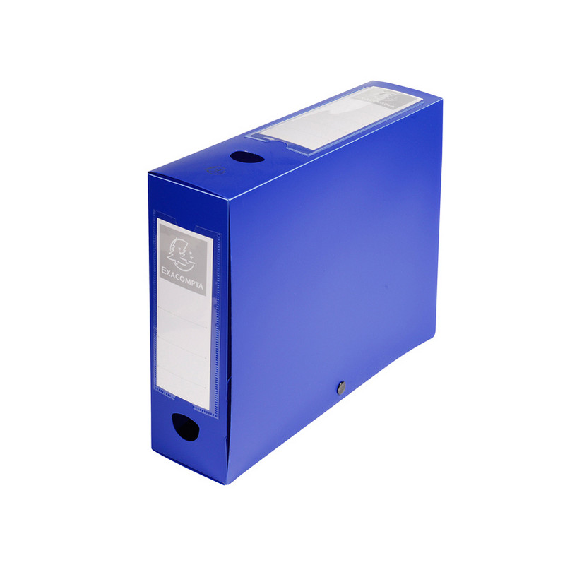 Scatole archivio box con bottone realizzate in polipropilene 700 micron opaco. Porta etichetta sopra le 2 facciate per l’archiviazione orizzontale o verticale.