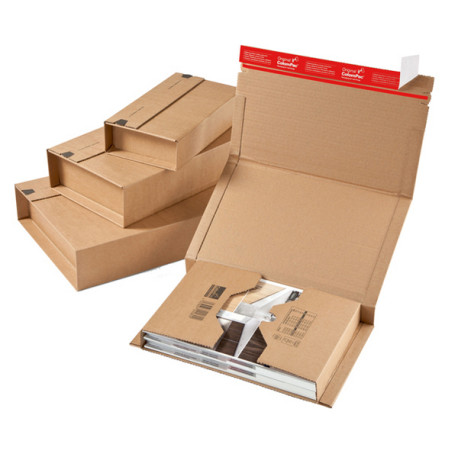 Scatole postali (fustellati) in cartone microonda avana che hanno le più varie applicazioni e sono principalmente utilizzati per effettuare spedizioni sia postali che a mezzo dei corrieri espressi. Proteggono totalmente ciò che è contenuto ed in particolare hanno dei parabordi per evitare ammaccature interne. Linguetta a strappo, bordi di sicurezza a taglio speciale. Chiusura autoadesiva. F.to interno 380x290x80mm. F.to est. 430x300x100mm. Peso 192 gr.