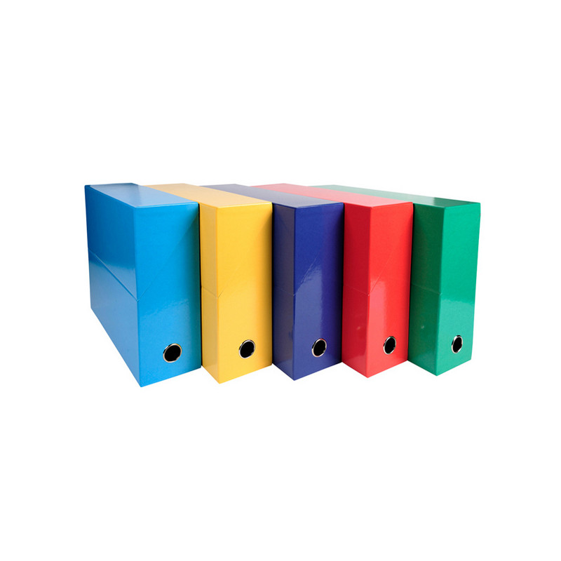 Scatole progetto in carta lustré plastificate per una migliore resistenza. Disponibili in 5 colori assortiti. Occhiello per facilitare la presa. Formato 25x33cm.