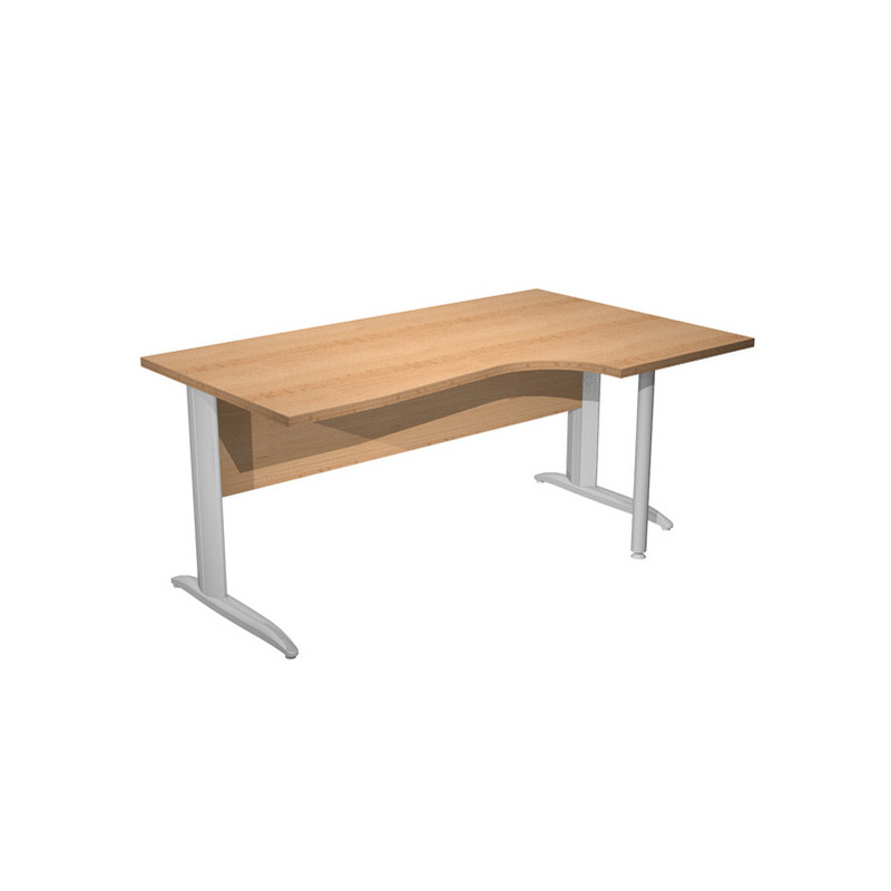 Scrivania compact destro sagomata con fianchi metal ad L verniciati effetto cromato. Spessore 22mm. Completi di canalina passacavi e piedini regolabili in altezza e supporto metal. Desktop con bordo anti urto in ABS da 2mm. Dimensioni: 160x60/80/100x72cm. Piano faggio.
