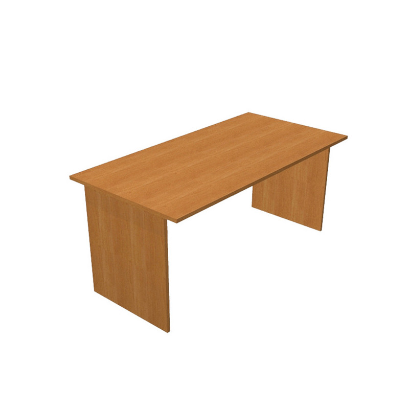 Scrivanie con dimensioni conformi alle normative sulla sicurezza dei posti di lavoro in ufficio. Bordatura dei piani in ABS 2mm antishock ed assenza di spigoli vivi. Le scrivanie sono disponibili nella versione con fianchi pannello in melaminico (sp. 22 mm) o con fianchi in metallo ad L verniciati effetto cromo completi di piedini regolabili in altezza e canalina passacavi ispezionabile. Scrivania operativa con fianchi legno, dimensioni: L160 x P80 x H72cm